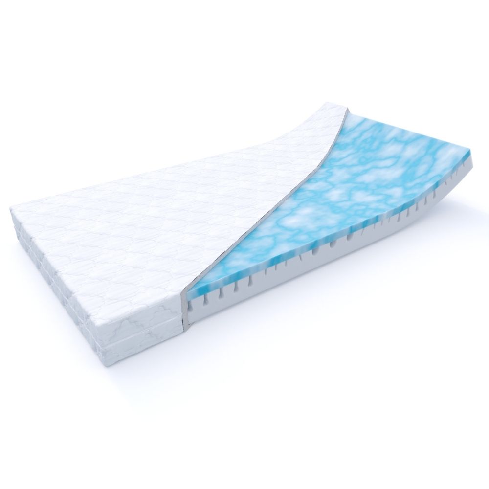 Die 4 cm hohe Gelschaum-Deckplatte mit einem Raumgewicht von 38 kg/m³ bietet eine hervorragende Punktelastizität und Druckentlastung. Mit einer Stauchhärte von 2,8 kPa passt sich der Gelschaum individuell an und sorgt für ein schwebendes Liegegefühl, unabhängig von der Temperatur. Die innovative Gelschaum-Technologie gewährleistet eine temperaturunabhängige Anpassungsfähigkeit, sodass Sie zu jeder Jahreszeit optimal schlafen.