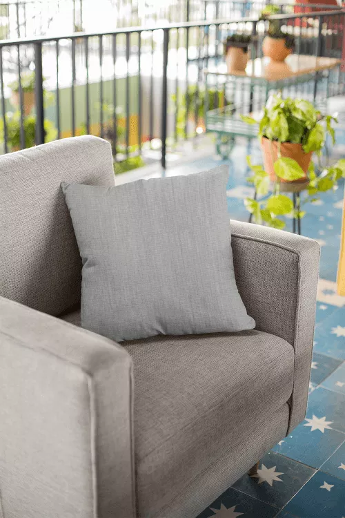 Produktinformationen zu unseren Outdoorkissen In- / Outdoorstoff Aurora: "Farbe Piedra"