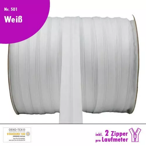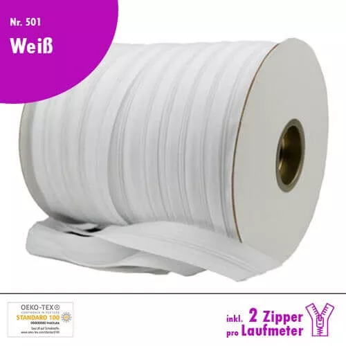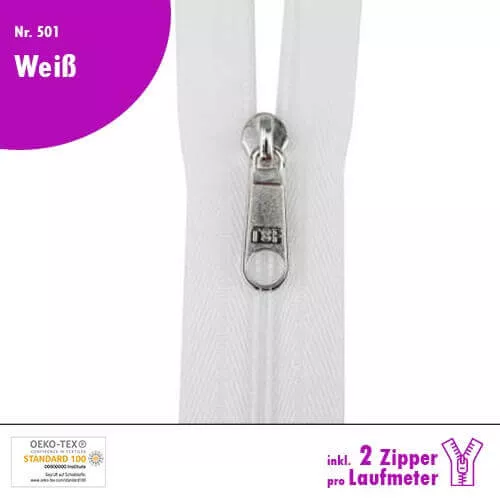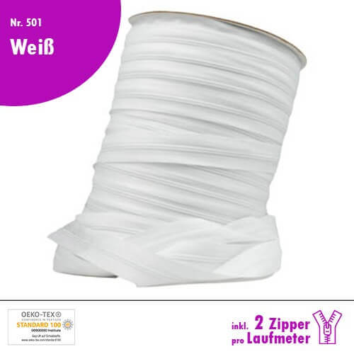 Qualitäts-Reißverschluss Nr. 501 in Weiss, in deiner Wunschlänge inkl. 2 Zipper pro Laufmeter!