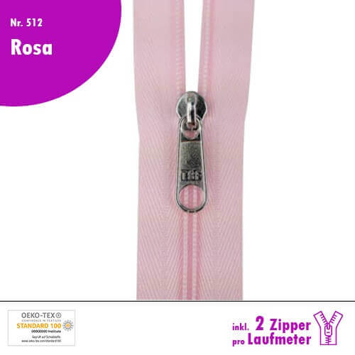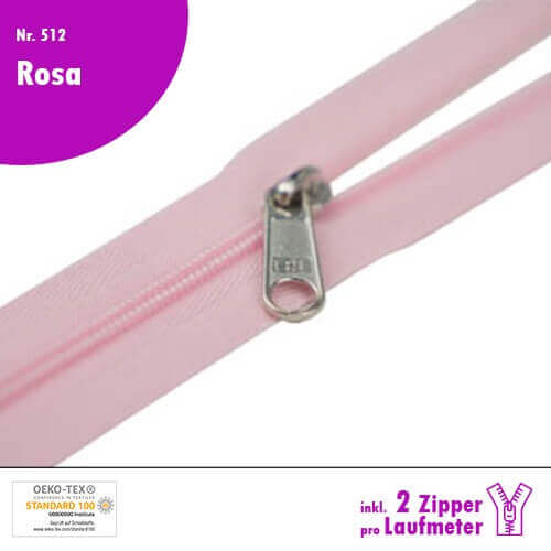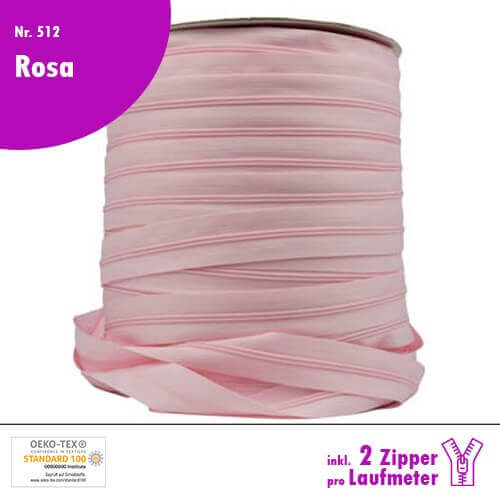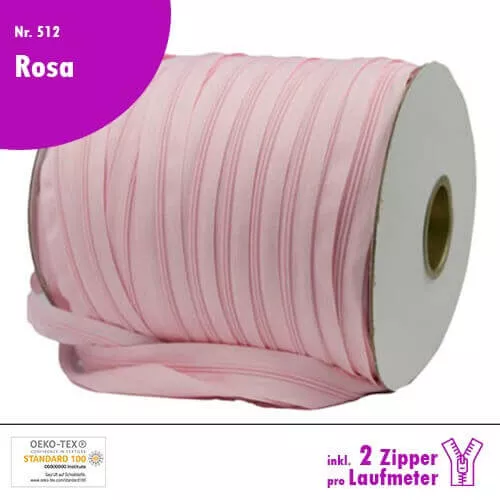 Qualitäts-Reißverschluss Nr. 512 in Rosa, in deiner Wunschlänge inkl. 2 Zipper pro Laufmeter!