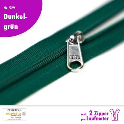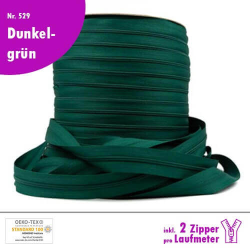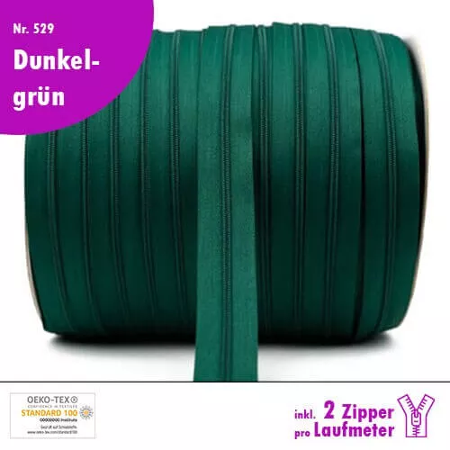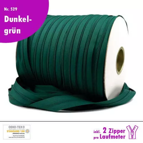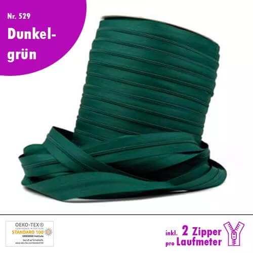 Qualitäts-Reißverschluss Nr. 529 in Dunklegrün, in deiner Wunschlänge inkl. 2 Zipper pro Laufmeter!