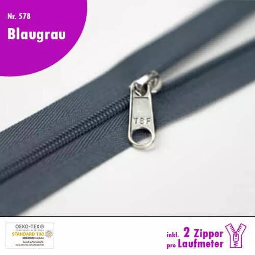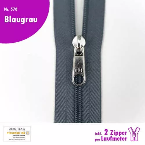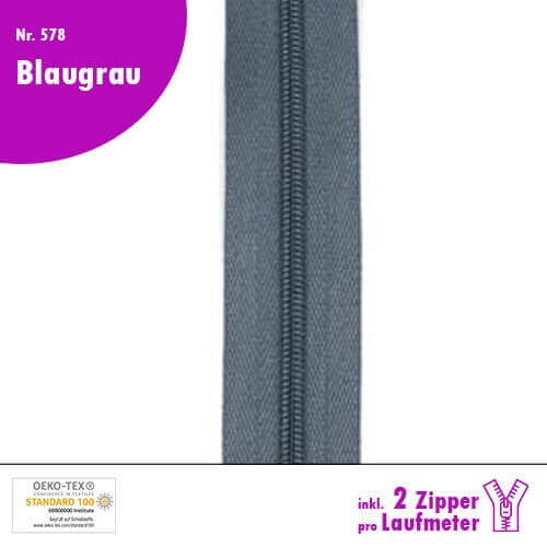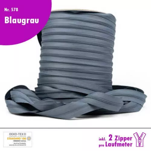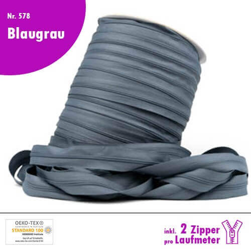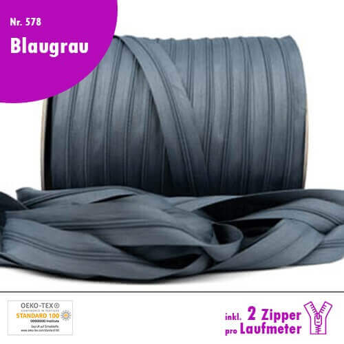Qualitäts-Reißverschluss Nr. 578 in Blaugrau, in deiner Wunschlänge inkl. 2 Zipper pro Laufmeter!