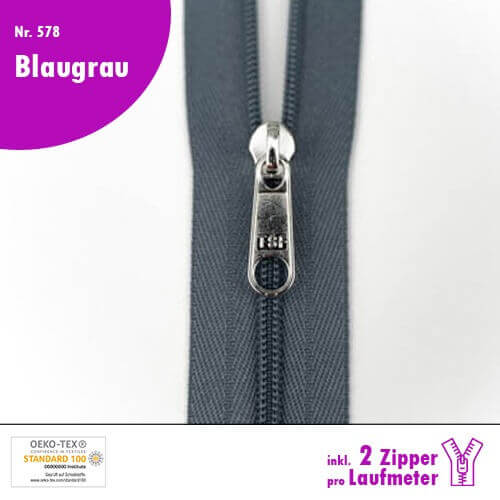 Reißverschluss Nr. 578 in Blaugrau in gewünschter Länge bestellen