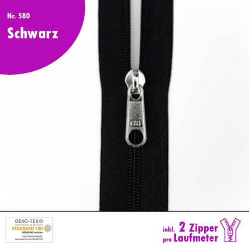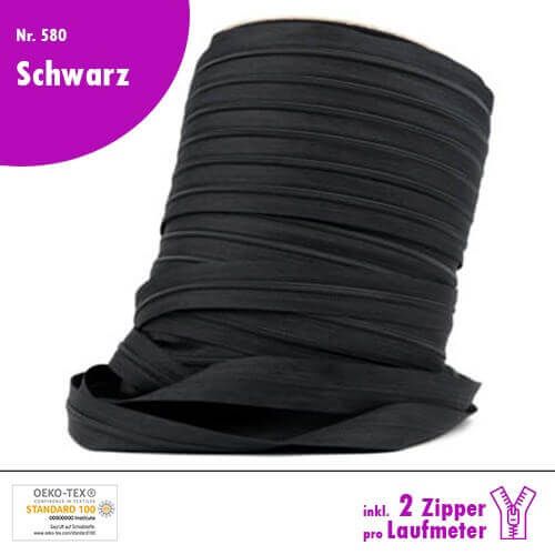 Qualitäts-Reißverschluss Nr. 580 in Schwarz, in deiner Wunschlänge inkl. 2 Zipper pro Laufmeter!