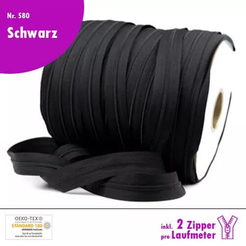 Exzellentes Reißverschluss Nr. 580 Schwarz als Meterware kaufen! Die Polsterung bietet erstklassigen Komfort und das Material ist langlebig und robust. Eine klare Empfehlung für jedes Zuhause. Qualitäts-Reißverschluss Nr. 580 in Schwarz, in deiner Wunschlänge inkl. 2 Zipper pro Laufmeter.