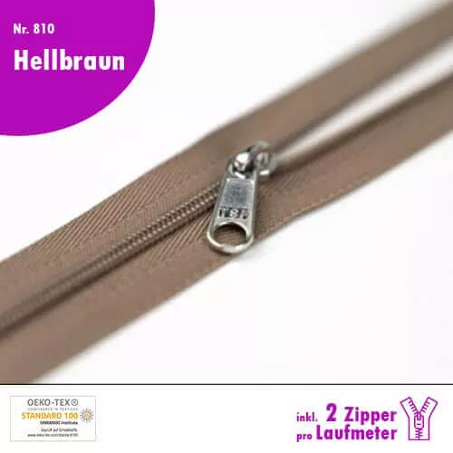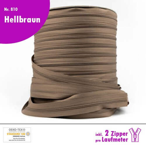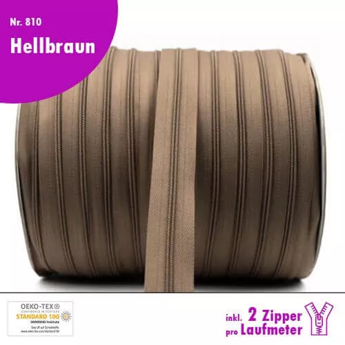 Qualitäts-Reißverschluss Nr. 810 in Hellbraun, in deiner Wunschlänge inkl. 2 Zipper pro Laufmeter!
