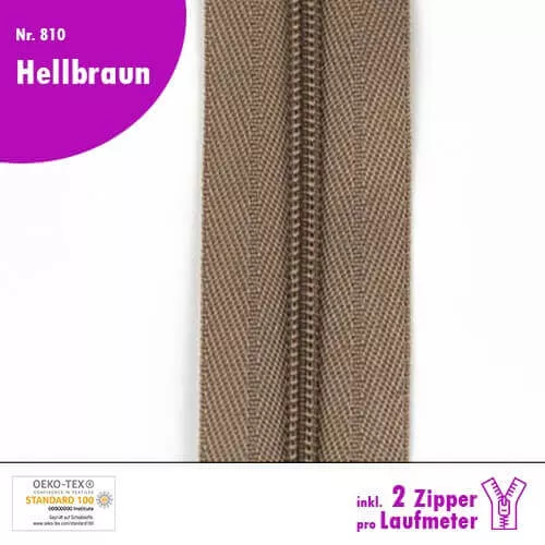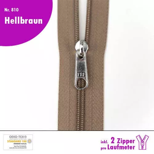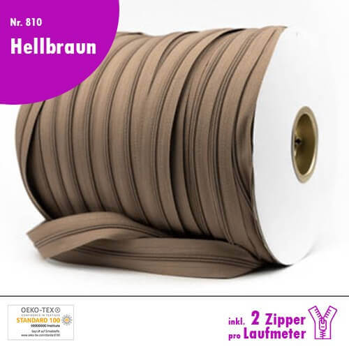Reißverschluss Nr. 810 in Hellbraun in gewünschter Länge bestellen