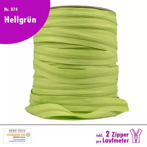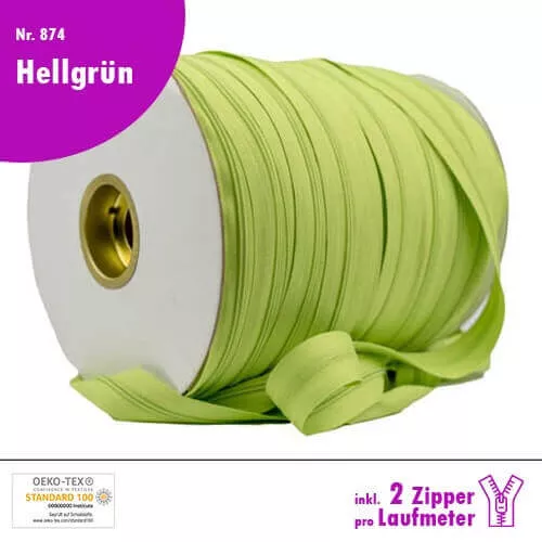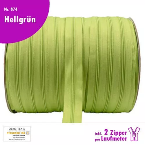 Qualitäts-Reißverschluss Nr. 874 in Hellgrün, in deiner Wunschlänge inkl. 2 Zipper pro Laufmeter!