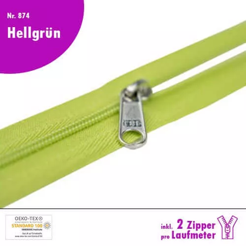 Exzellentes Reißverschluss Nr. 874 Hellgrün als Meterware kaufen! Die Polsterung bietet erstklassigen Komfort und das Material ist langlebig und robust. Eine klare Empfehlung für jedes Zuhause. Qualitäts-Reißverschluss Nr. 874 in Hellgrün, in deiner Wunschlänge inkl. 2 Zipper pro Laufmeter.
