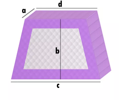 Die Trapezform kann in jede Richtung laufen - von Kopf zu Fuß oder von Seite zu Seite. Wichtig ist, dass Du uns die beiden unterschiedlichen Breiten (Maß c und d) korrekt angibst. Eine Skizze hilft uns, die Orientierung richtig zu verstehen. sende diese uns per E-mail und gib deine Bestellnummer bitte mit an.